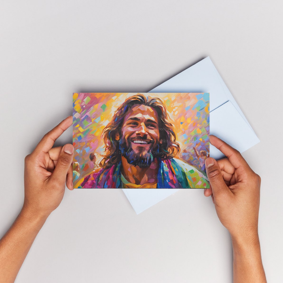 ‘Awe of Jesus' reflects kindness and joy, painted in warm rainbow hues that highlight the light in Christ’s expression. With uplifting brushwork, Mike Dibbens conveys faith as something deeply life-giving. From the Spiritual Kingdom Collection, this artwork makes a bright and hopeful statement.