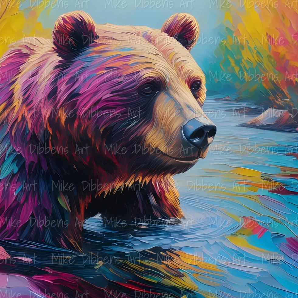 "‘Bear’ portrays strength, protection, and calm, painted in earthy tones blended with rainbow highlights. Mike Dibbens’ textured brushwork captures both the bear’s power and its gentleness. Part of the Animal Kingdom Collection, it reflects resilience and quiet confidence.