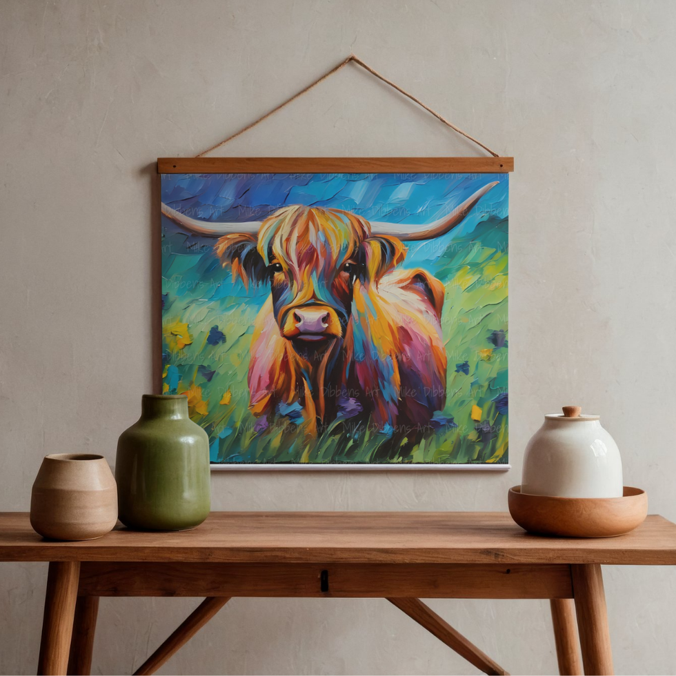 "‘Cow’ celebrates simplicity, nourishment, and life, painted in radiant tones of cream, chestnut, and vibrant colour splashes. Mike Dibbens’ expressive brushstrokes highlight the cow’s peaceful nature. From the Animal Kingdom Collection, this piece symbolises abundance and grounding.