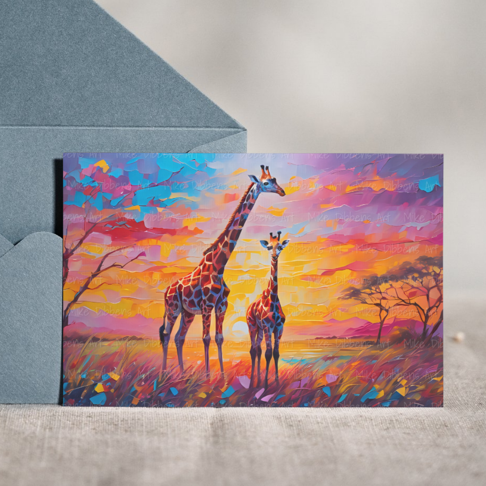 " ‘Giraffe’ celebrates elegance and perspective, painted in radiant yellows, oranges, and rainbow hues. With tall, graceful lines, Mike Dibbens conveys both majesty and gentleness. Part of the Animal Kingdom Collection, it symbolises vision and hope.