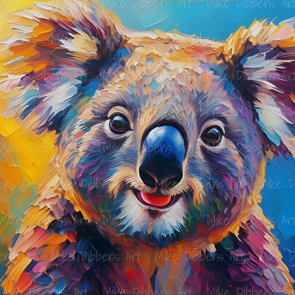"‘Koala’ radiates calm and comfort, painted in soft greys, blues, and rainbow tones. With serene brushstrokes, Mike Dibbens highlights the koala’s restful nature. From the Animal Kingdom Collection, it symbolises peace and care.